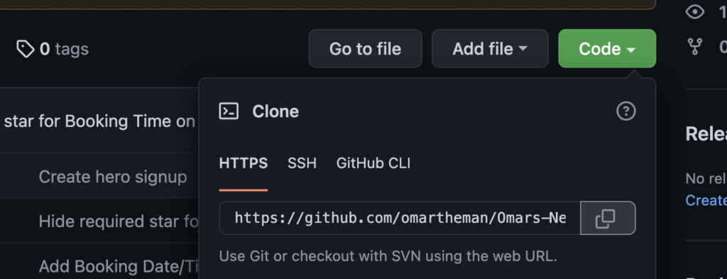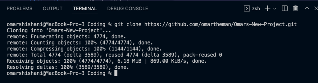 $ git clone 'https://github.com/omartheman/Omars-New-Project.git'