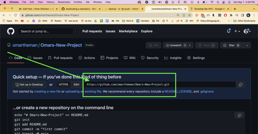 $ git clone 'https://github.com/omartheman/Omars-New-Project.git'
