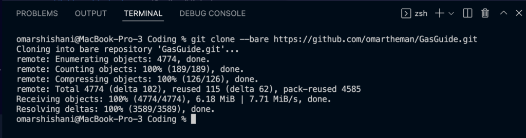 Next we want to do is create a bare copy of the repository we want to duplicate. We can do this with the command:
